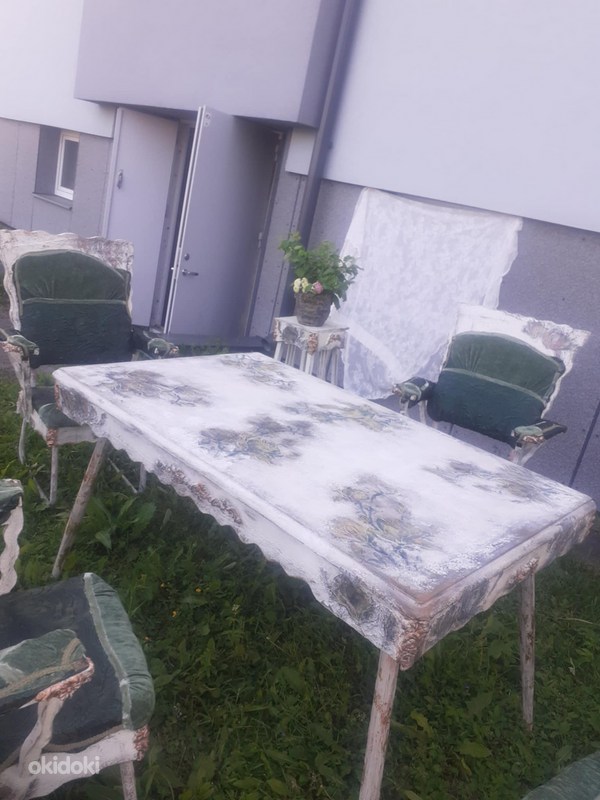 Eksklusiivne lauakomplekt 4 tooli ja lillepostiga