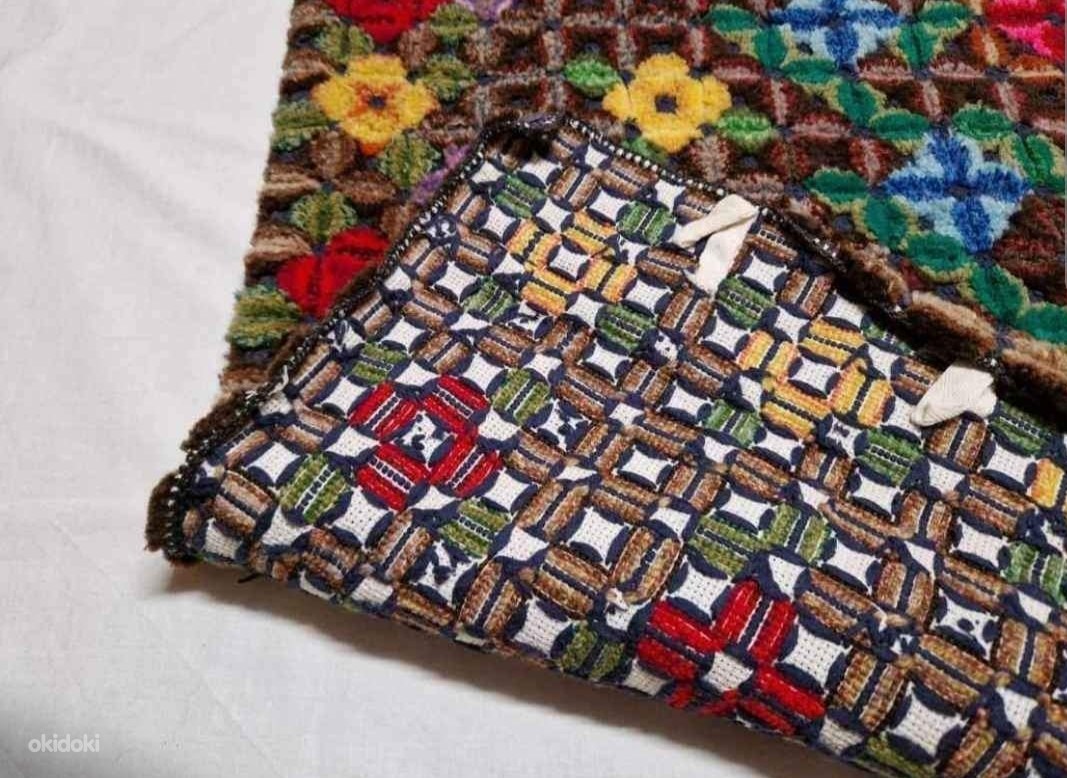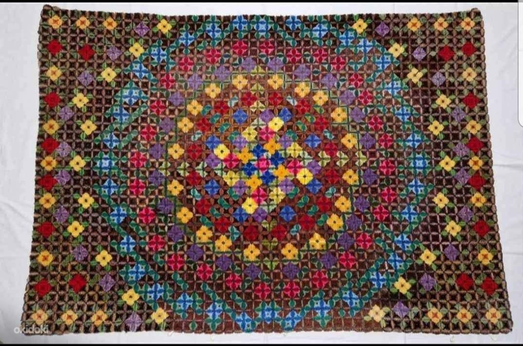 Eritehnikas tikitud voodikate/vaip, käsitöö