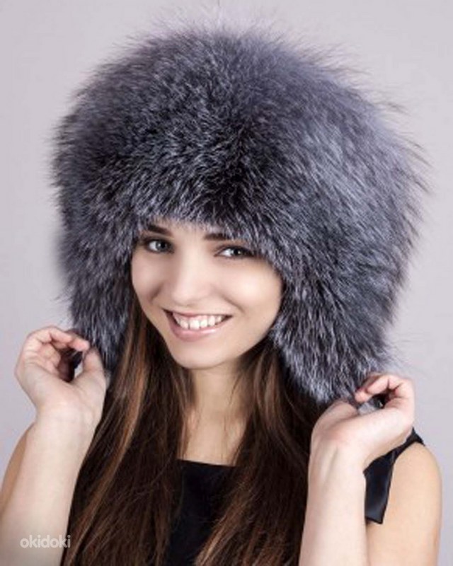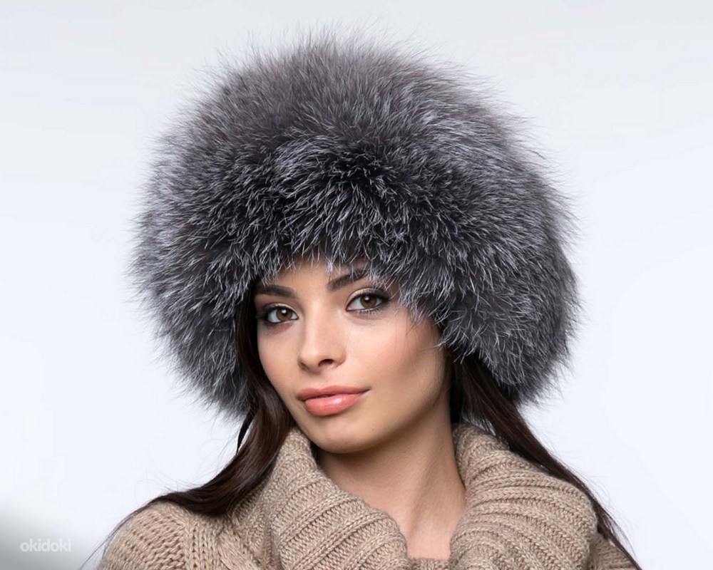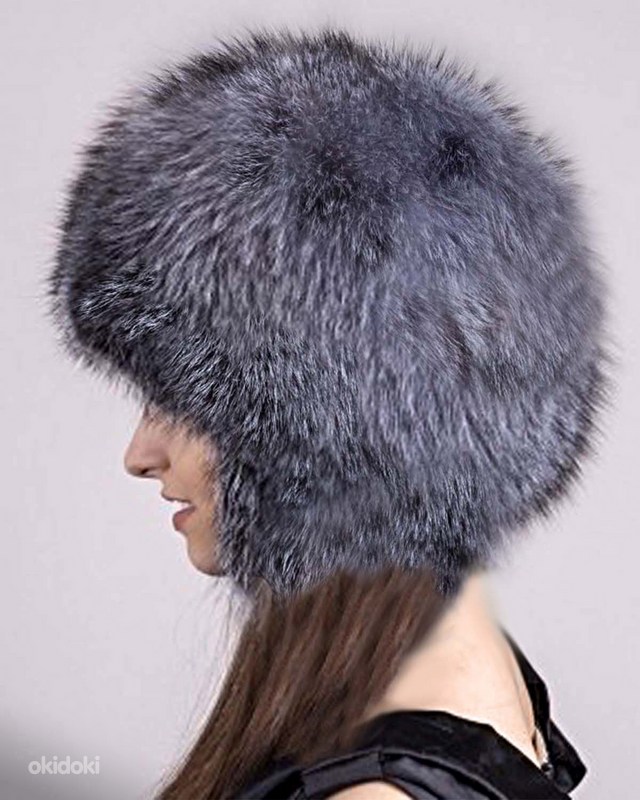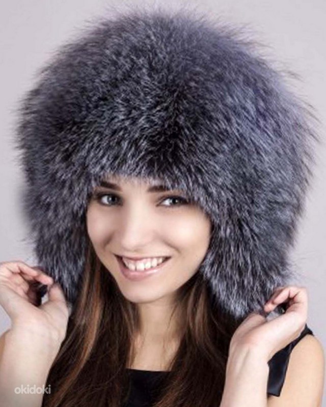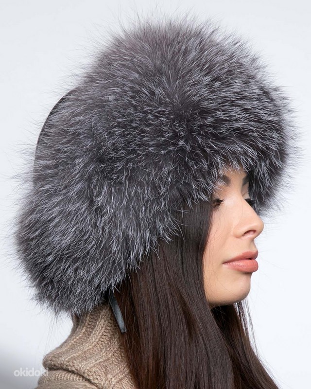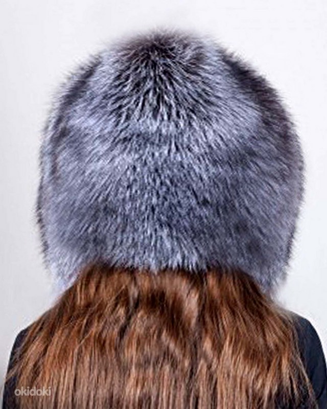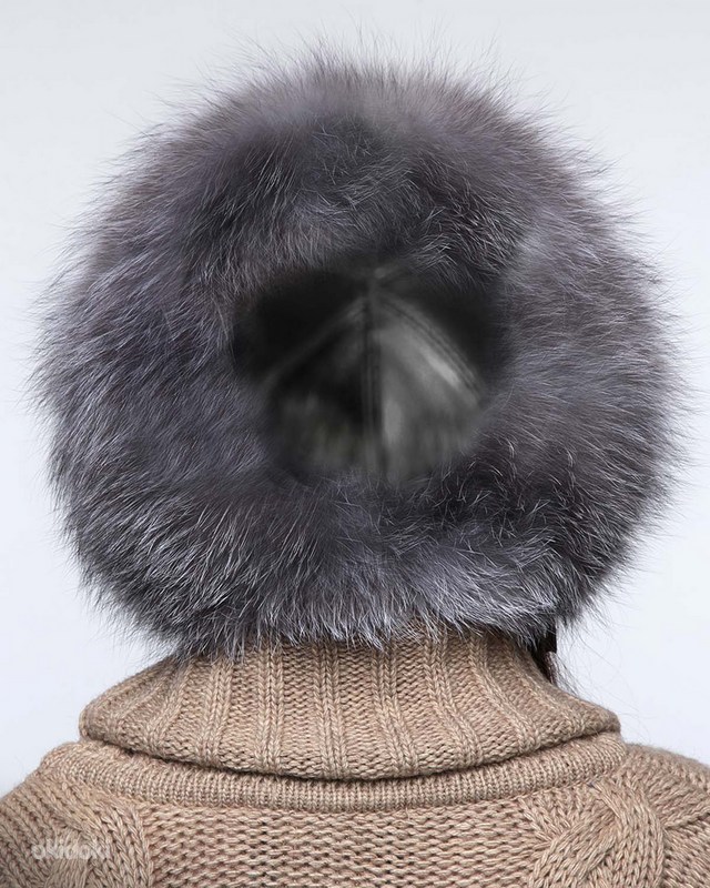 Hõberebase karusnahast rikkalik müts-kapuuts, uus
